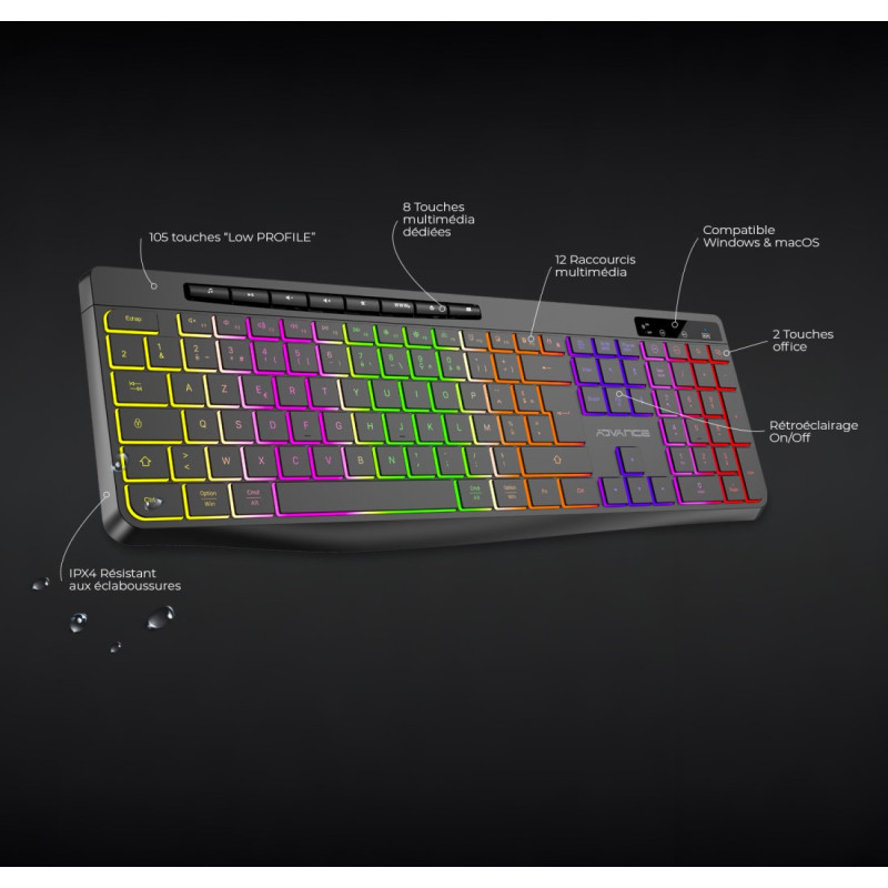 Clavier Gamer Sans Fil ADVANCE R-TYPE CLA-310BK RGB Noir – CLA-310BK