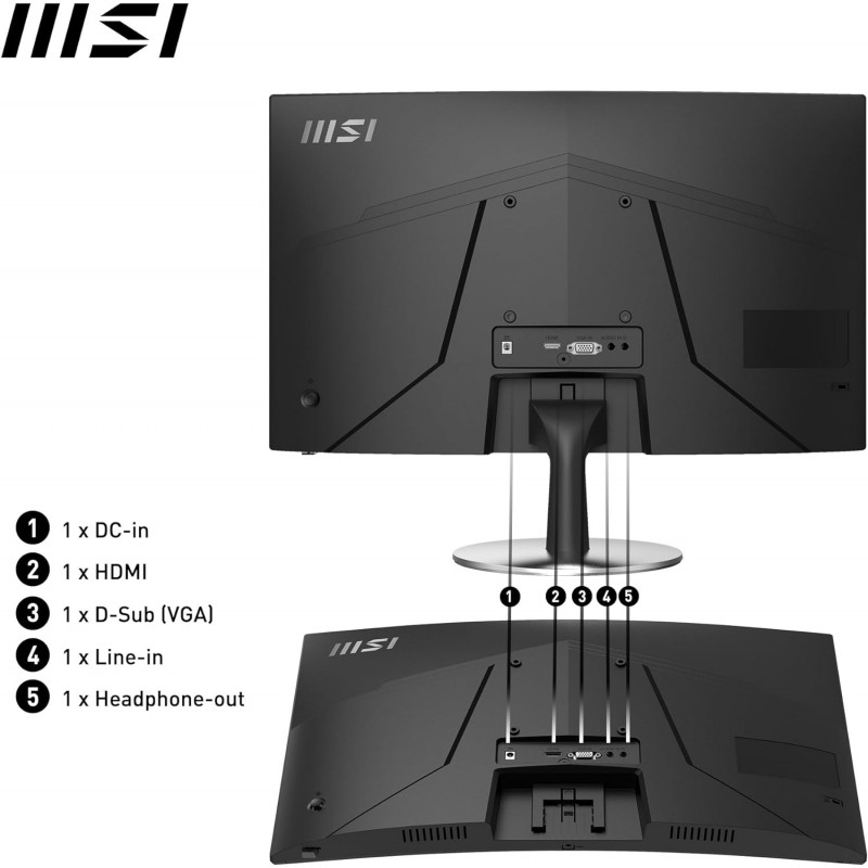 – Connecteurs: 1x HDMI (1.4b), 1x D-Sub (VGA), 1x entrée ligne, 1x sortie casque