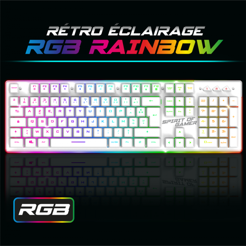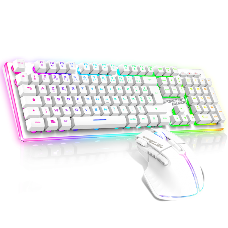 Pack Gaming Sans fil Spirit Of Gamer clavier semi mécanique + souris ULT600 RGB -Blanc – CLS-MKH600S-WT